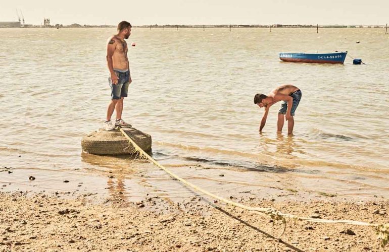 Todos estos protagonistas se reúnen en una escena clave. Frente a la marisma, Israel se lía un cigarro de marihuana. Habla con Cheíto. Éste le dice que tiene que dejarlo. La conversación nos lleva desde la muerte como ente presente en sus vidas, pasando por la inocencia incrustada en ellos y bañada por la malicia como ente antagónica, al planteamiento de qué es ese preciso momento para ellos y qué hacen allí, sentados.