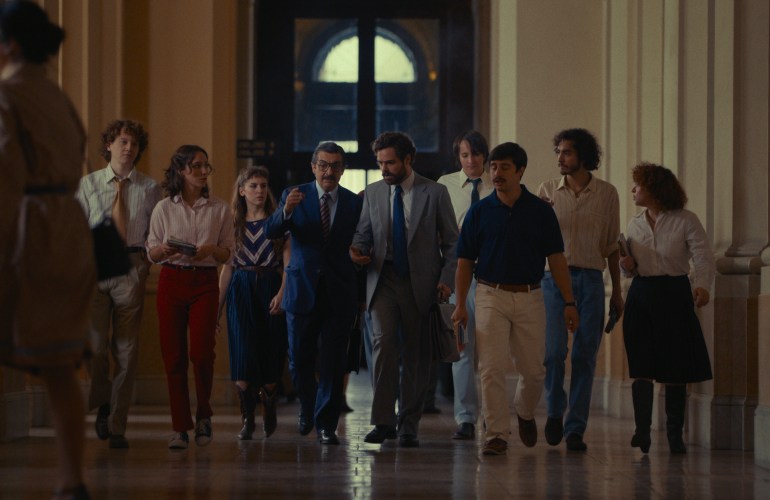 Unas muertes que la dictadura militar argentina utilizaba como arma política. Un arma que extendió el miedo entre la pobalción como herramienta impositiva de control. Un control, quizás, que caló hondo llevando a Strassera (Ricardo Darín) y Ocampo (Peter lanzani) a la dificultad de encontrar testigos. Unxs testigxs mapeados y buscados por el futuro, por jóvenes abogadxs que trabajan en las cortes como secretarixs, en los juzgados, entre otros.